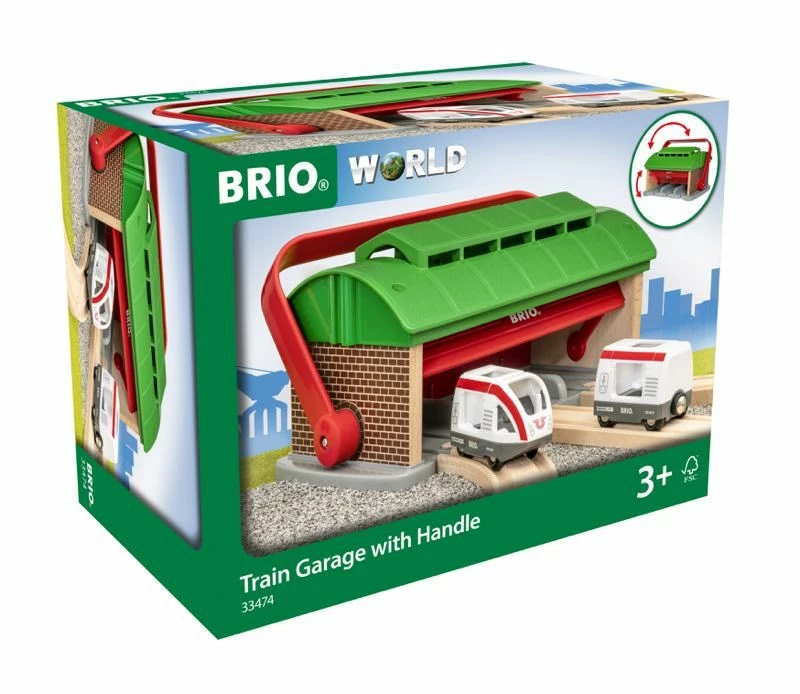 Trains need a good place to rest, and the Train Garage with Handle is the best place to park. Attach this garage to the wooden tracks, and then pack it up to carry your trains with you anywhere.
