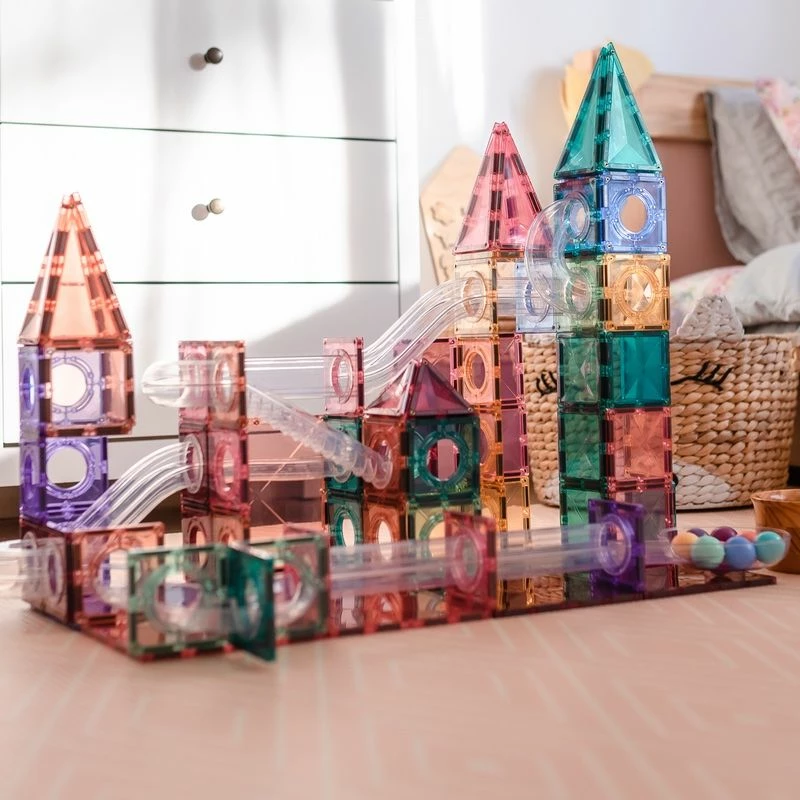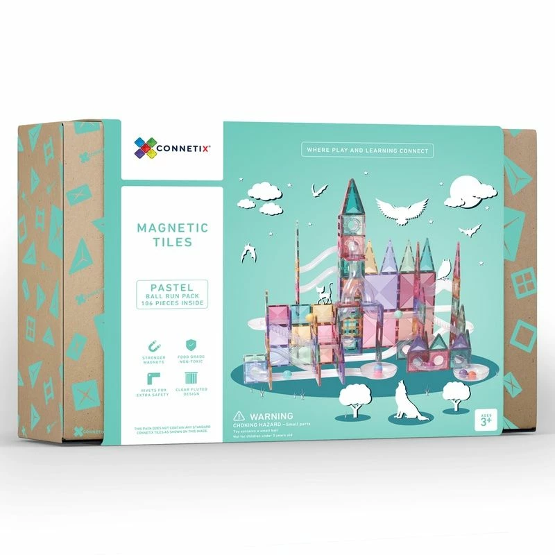 The magical 106pc Pastel Ball Run Pack is an exciting way to introduce kids to motion, gravity, and magnets through play, watching the colourful balls wind through the track! The set contains innovative pieces that ensure unique and engaging play! The clear fluted tubes let you keep track of the balls and watch them the whole way, and the staircase pieces create fun sounds! Kids can begin learning all about STEM, sparking a desire to create, design, and build that will last a lifetime. Connetix Tiles are designed to be strong and durable, while ensuring children can keep playing and learning as they grow.