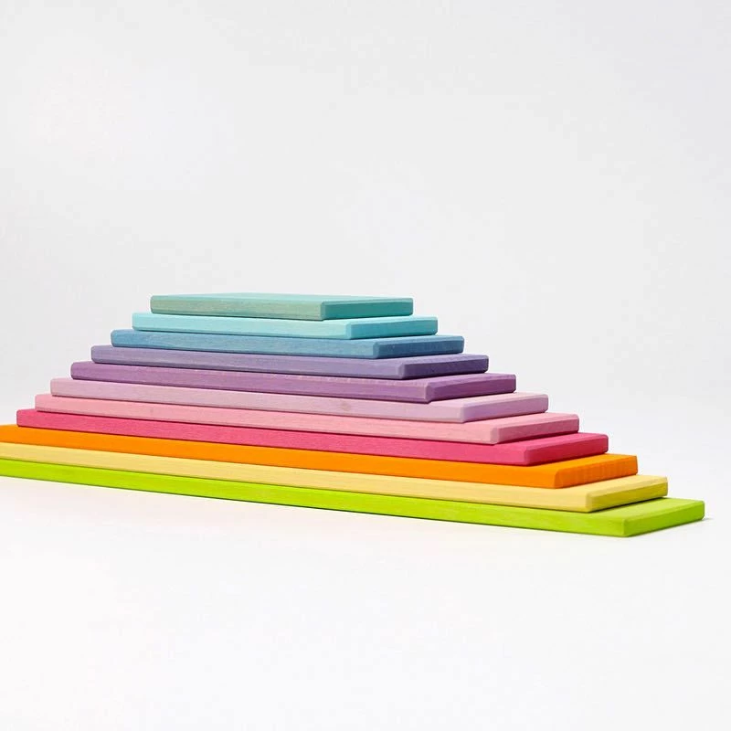 Children will gravitate towards these beautiful pastel coloured Grimm’s Pastel Building Boards with the option to use on their own or in combination with other Grimm’s building materials. Children can explore and create using imagination and concentration, extending their own ideas and creating a new design each and every time. The Pastel Boards consist of 11 pieces.