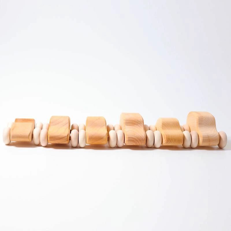 Take a ride through the countryside or race down the tracks , the possibilities are endless with these 6 Wooden Cars from Grimm’s These beautiful wooden cars are perfect for open ended play and work with other Grimm’s products as they are perfect for small hands. Once the get dirty they don’t need to be taken through the car wash, a damp cloth is just fine.