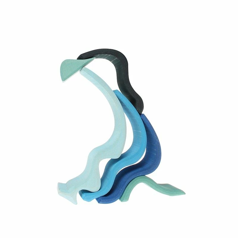 This hugely popular educational wooden waterwavesl is very versatile and perfect for imaginative play. Toddlers and children will stack, sort and build with this Waterwaves Small by Grimm’s, and as they get older they will use it for other areas of play including cradle for dolls, as a fence for animals, a tunnel or bridge for vehicles, as a house for dwarfs and dollhouse dolls. It can also be used to build amazing sculptures. This free form stacking will develop and stimulate hand-eye coordination, fine motor skills and creativity.