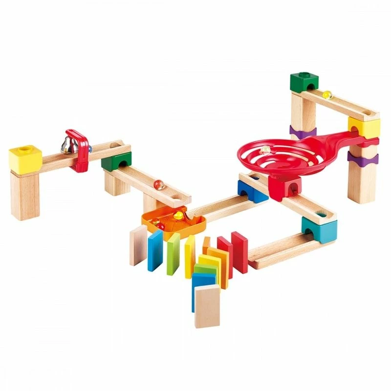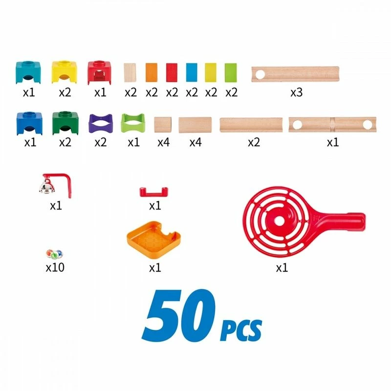 - 50 pieces including a ringing bell, a spiral funnel, a marble tray and a set of 18 dominoes
