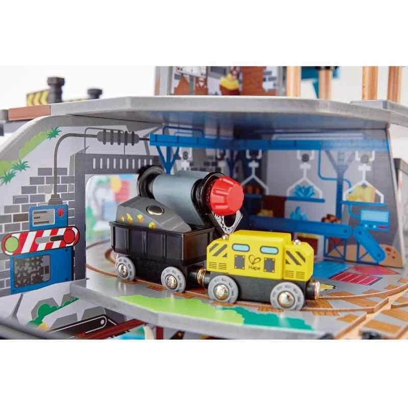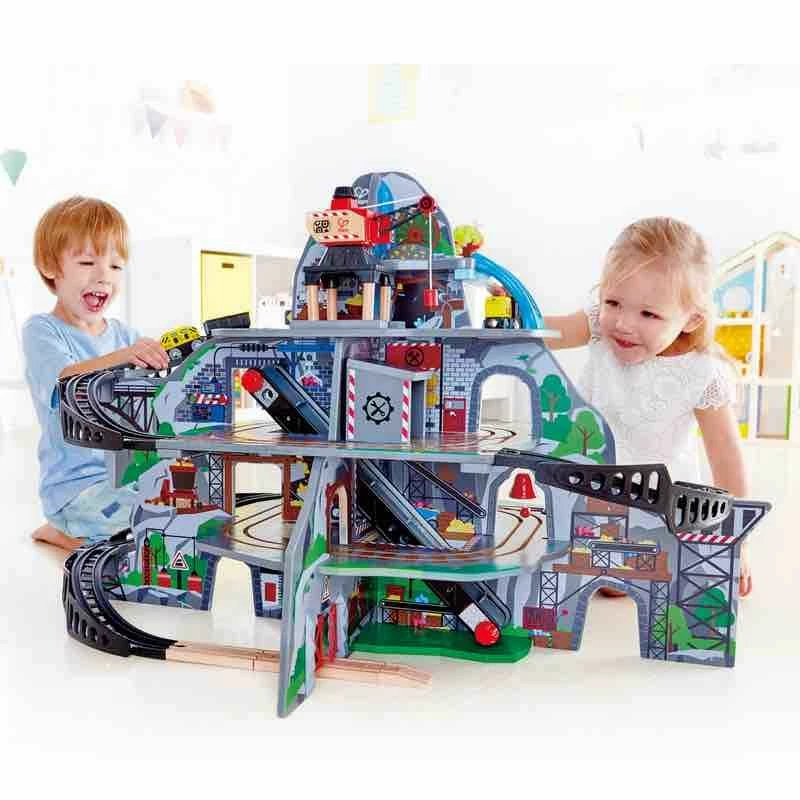 Explore the dusty depths on a mountain mine and make it to the top! The Mighty Mountain Mine by Hape is the proud Winner of the Australian Toy Association Educational Toy of The Year 2017 and it’s very easy to see why. This item is multi-level and forms a large mountain with tracks venturing both in and outside. Included is a waterfull tunnel, obstacle bridge, rope bridge, crane, conveyer belt, 3 carriages with ore, mulitple pieces of track, turning sign, and a repair station with a bell signal. Your little one can load their train with supplies using the crane and then begin their adventure down the mountain, when passing the waterfall tunnel you can remove the tunnel wall and by turning it upside down are able to view the magical liquid behind. Next, you must continue to navigate your way to the bottom without getting caught in any hazards, then cross both the obstacle and rope bridge. At the bottom you can unload your ore and, using the conveyer belt, transfer it to the third level from. Finally, you can then take a new load to the surface.