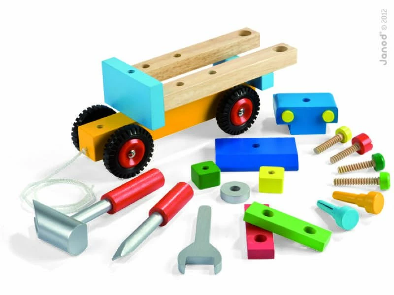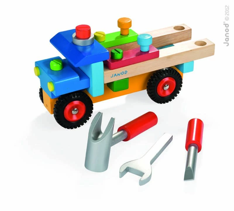 The BricoKids DIY Truck is the perfect way to move around between construction sites. The truck has several tools that fit in the back, so little ones can use the push along toy for imaginative play while improving fine motor skills. Janod has a long history of making sturdy traditional wooden toys that evolve with current trends. Made with safe, durable materials, every product is designed to be educational and enjoyable.