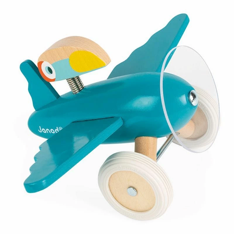 This Diego Plane from Janod’s Spirit collection is just stunning. This solid wood teal lacquered plane features an inimitable style and French design with a toucan and rubber wheels. This stunning plane is sure to please a child young or old. These toys are perfect for play or display in you little one’s room.