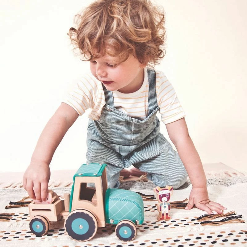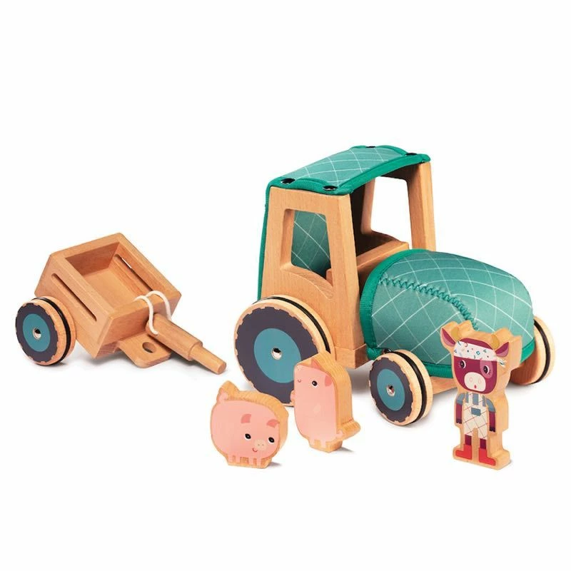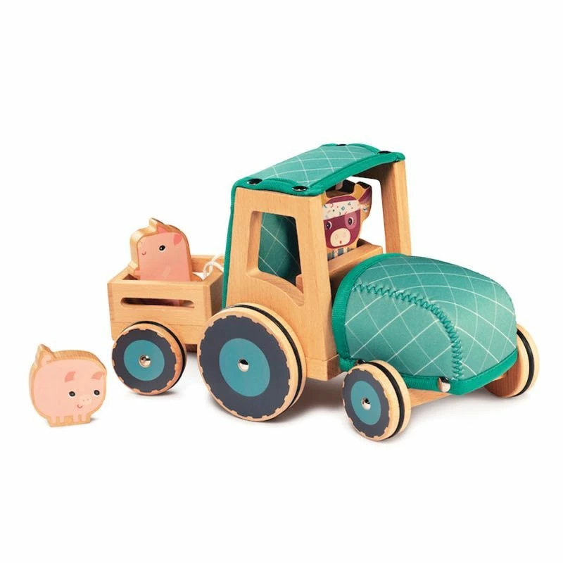 The Wooden & Fabric Tractor is the best vehicle for your farm! Put the pigs in the trailer to move them around, while Rosalie fits in the tractor cab. The Rubber grip on the wheels keeps it steady, and the soft neoprene cab on the tractor creates texture. Lilliputiens was founded by a group of mothers in Belgium, and has been creating wonderful baby & kids toys since 1995.