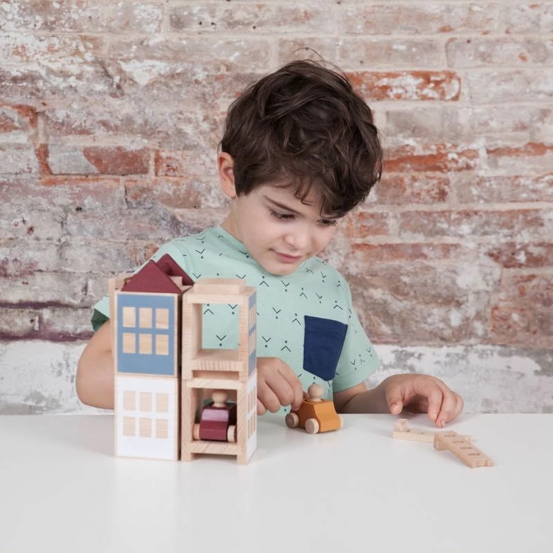 The Lubu Town Autumnvale Maxi is a great imaginative wooden set, perfect for building and roleplaying city life and much more. This cool set is made from beech wood and is printed with safe ochre and plum inks to add some beautiful autumn tones. Lubulona is a Spanish toy company dedicated to creating high quality and eco-friendly products for kids. The enjoyable and minimalistic designs offer great opportunity for imaginative and educational play. Their wooden toys are designed in Barcelona and manufactured in Europe to ensure the environmental impact is low.