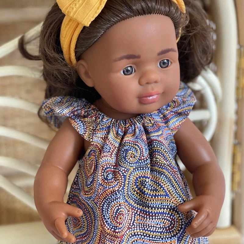 My husband and daughter are Aboriginal; so it has always been important to me to teach Mia about her heritage, culture and family history. So I feel very honoured and proud to create this collection of clothing in collaboration with Miniland Dolls Australia and the launch of their new Australian Aboriginal Miniland dolls.