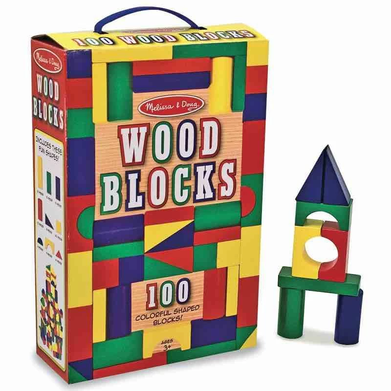 Start building and constructing with this vibrantly coloured 100 Piece Wood Block Set by Melissa & Doug. The block set includes 100 wooden blocks in four different colours and nine shapes that are built for stacking, building and knocking down. Children use blocks in different ways as they grow whilst at the same time developing colour and shape recognition and fine motor skills.