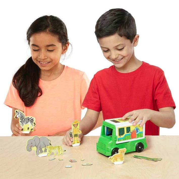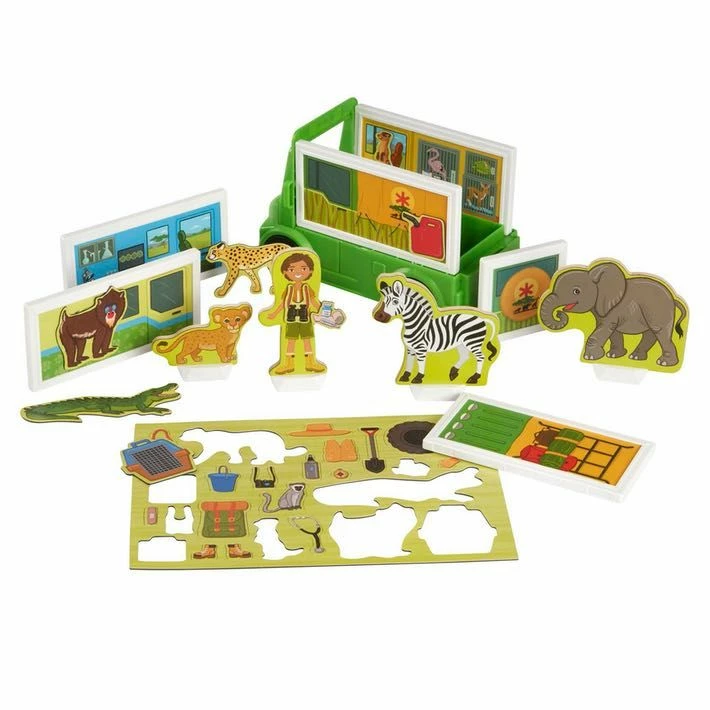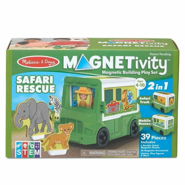 Explore the wild with Melissa & Doug. This unique 39 piece Magnetic Building Set allows you to turn from a Safari Truck into an Animal Rescue Truck changing the panels. Put the safari ranger in the drivers seat and your off through the savannah, but look out for the animals. This set is perfect for STEM development as it allow you children to design, experiment, explore and imagine.