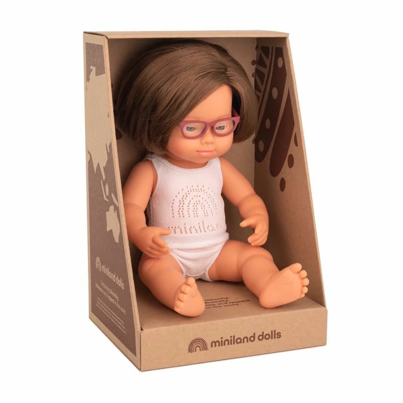 The Caucasian Girl with Down Syndrome and Glasses is lovely doll to teach inclusivity and understanding to children. This anatomically correct doll helps support nurturing and empathy through play. Whether they see themselves or a sibling in a the doll, or just love her as a new friend, this 38cm doll is a wonderful toy.