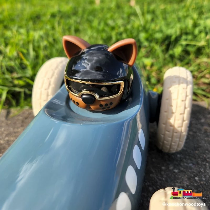 The Midi Egg Roadster Scrambler is an awesome car with a cool cat driver! The stylish driver has goggles & a helmet and loves to drive fast! The design is inspired by a mix of elements, including the 80’s yo-yo and rally car wheels. Race this car against the Midi Rufus dog cars for even more fun! Collect all three of the Midi Egg range.