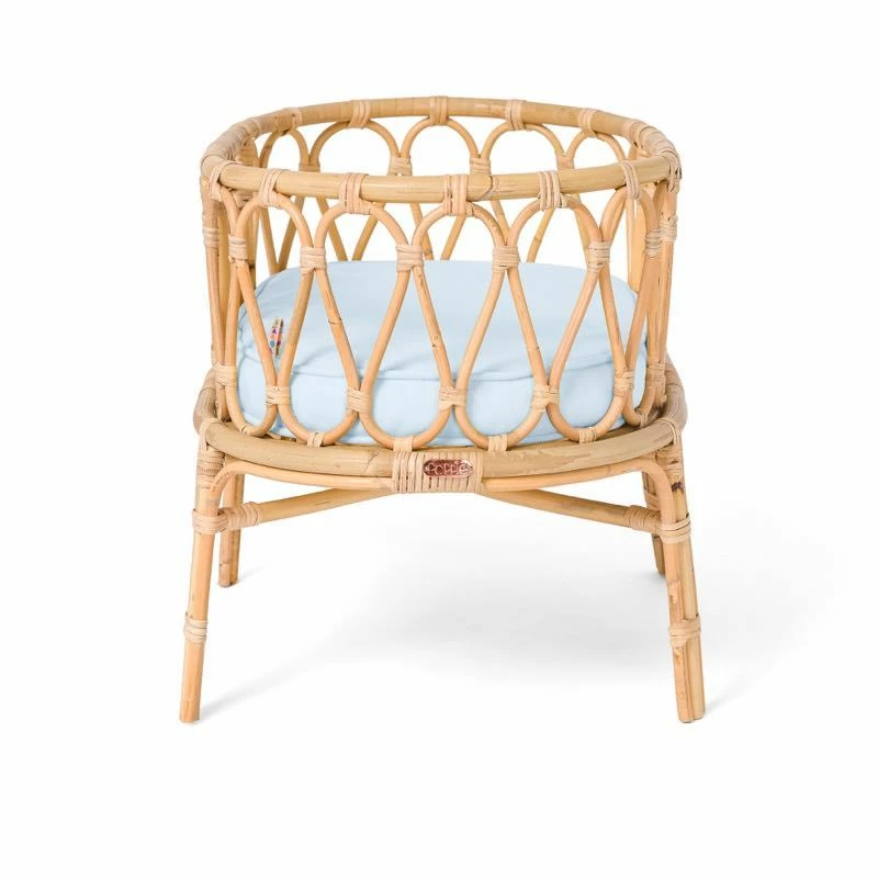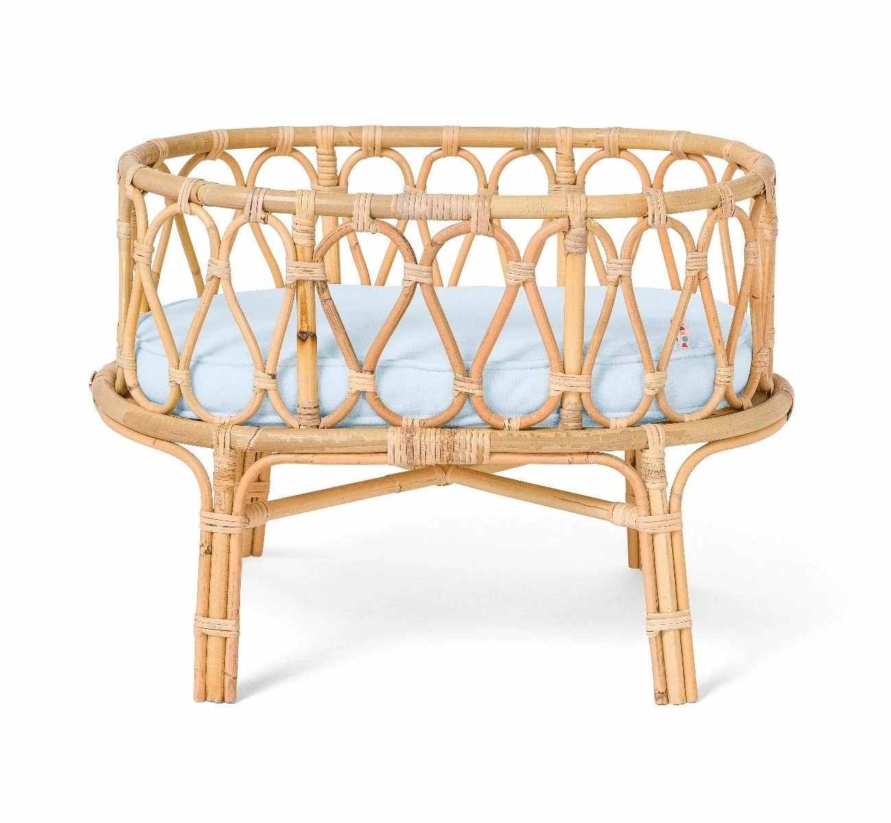 Whether you’re looking for a change, or need to replace a much-loved mattress, the Baby Blue Crib Mattress is designed to fit perfectly in the Poppie Cribs. The amazing tone of blue is a favourite for many, and will be loved by kids, adults, and dolls alike. Switch out your old coloured mattress for a new one, or replace one that has been played with and loved for as long as it could be, and make your durable rattan crib bright and comfortable.