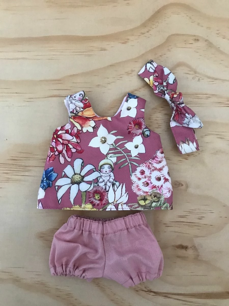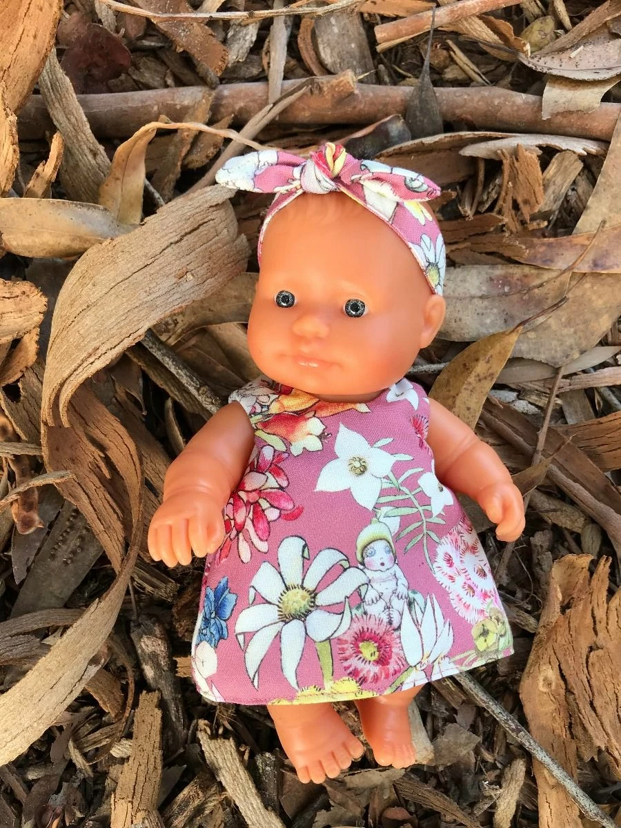 This sweet little Pink Dress is sewn from the adorable Snuggle Pot & Cutie Pie design by May Gibbs. This outfit is designed to fit a 21cm Miniland Doll, and comes with matching bloomers and headband. Tailoring For Miss Polly has been designing and hand sewing dolls clothing since 2016, ensuring the highest quality and best fit. While every effort is made to ensure the images are accurate representations of the products, colours and tones may vary on different screens.
