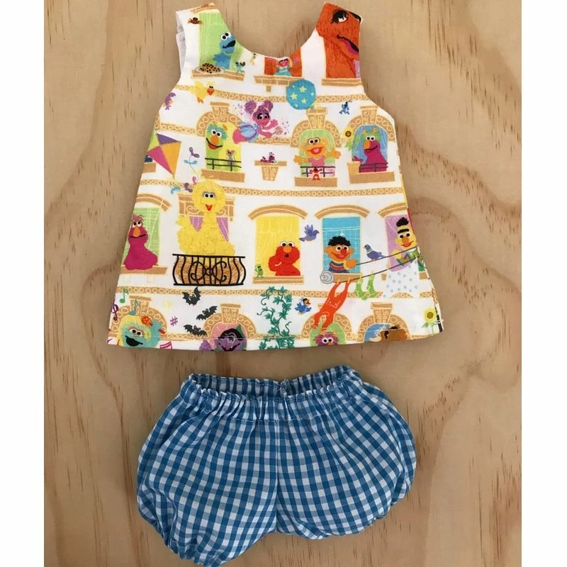 The Sesame Street Apartments dress is a colourful & quirky outfit kids will love dressing their doll in! Spot the awesome characters of the show peering through their window on this dress with a pair of blue bloomers.