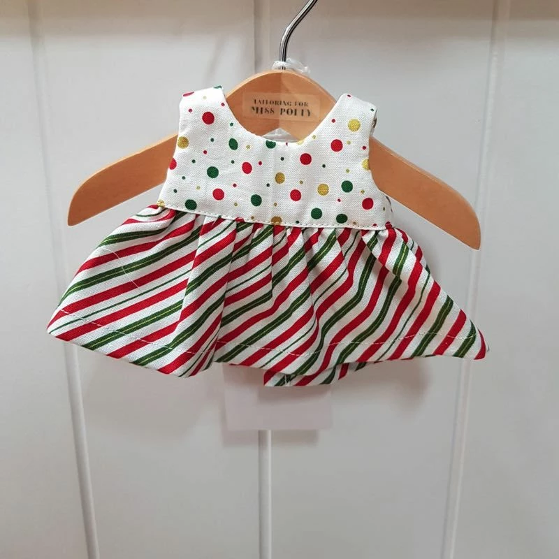 The Christmas Stripes dress is a sweet little outfit! This cute dress comes with matching bloomers and measures to fit a 21cm Miniland doll. Since 2016, Michelle has been making well-crafted doll clothes. Using only quality materials, and years of sewing experience, the family-run business tests each item on their own Miniland dolls to ensure the perfect fit.