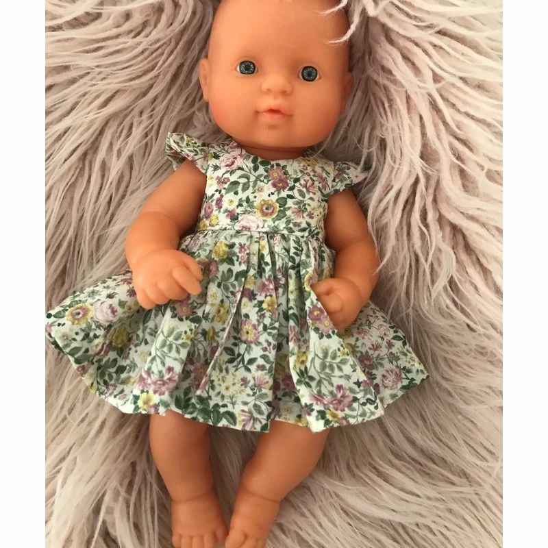 The Dusty Romance dress is a sweet outfit of muted colours that will lovely on a 32cm doll. Children can dress their doll in the dress & the pink bloomers underneath.