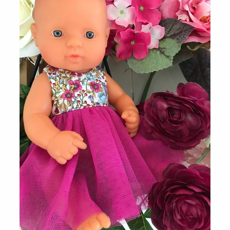 The Wild Flowers In Fuchsia with Tulle skirt is a fun dress for 32cm Miniland Dolls! This pretty outfit comes with bloomers for the doll as well.
