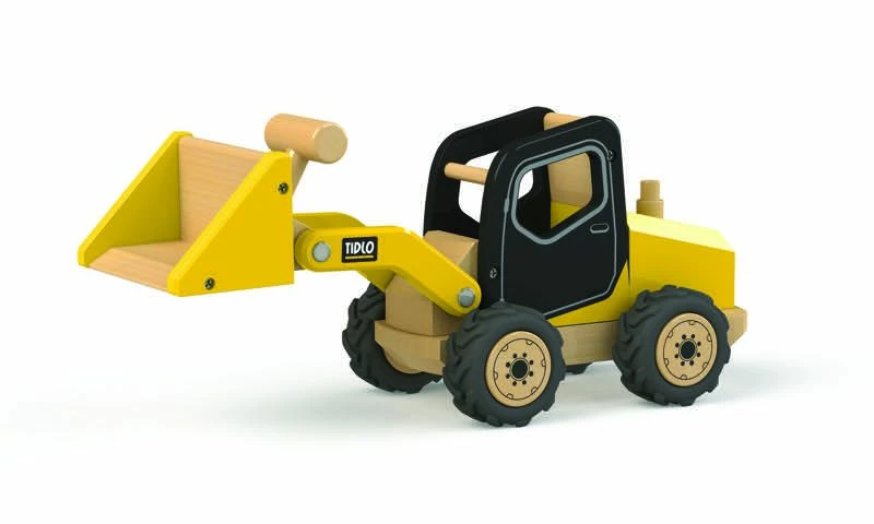 This hard-working Front End Loader is here to help lift, move, and build something exciting! This wooden vehicle is heaps of fun, with moving parts and a classic yellow colour. Add the Tidlo construction crew, equipment, and other vehicles to get a construction company up and running! The wheels spin and the front shovel lifts up & down for interactive play!