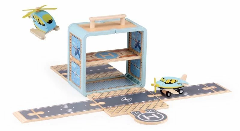 Welcome to the airport that is perfect for home, on the go or travel. Designed in a portable and stylish plywood box this fun Plane Boxset by Udeas is packed full of excitement. Just open the sides and unpack the pieces to construct the runway and helipad, once constructed your airport is ready for flights with 1 x wooden plane and a helicopter you will have the passengers on the way to their destinations in no time.